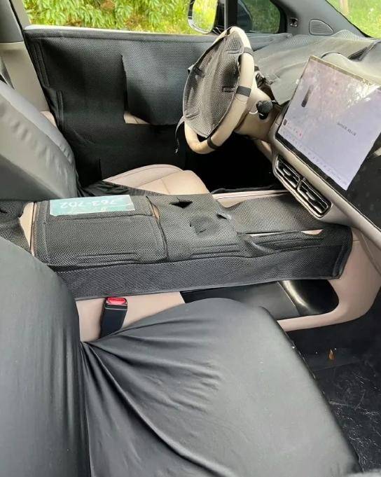 早期还有内饰谍照流出,车内装配了大尺寸的中控屏和副驾屏,副仪表台采用桥鞍式造型,下方设计有实用的储物空间,并预计配备手机无线充电面板,中央扶手箱盖板为对开式设计。